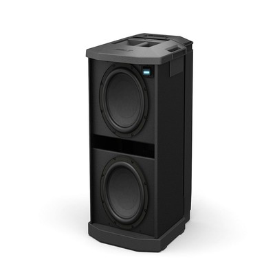 Two high-excursion drivers, each measuring 10 inches, are built into a compact enclosure that is light and easy to transport