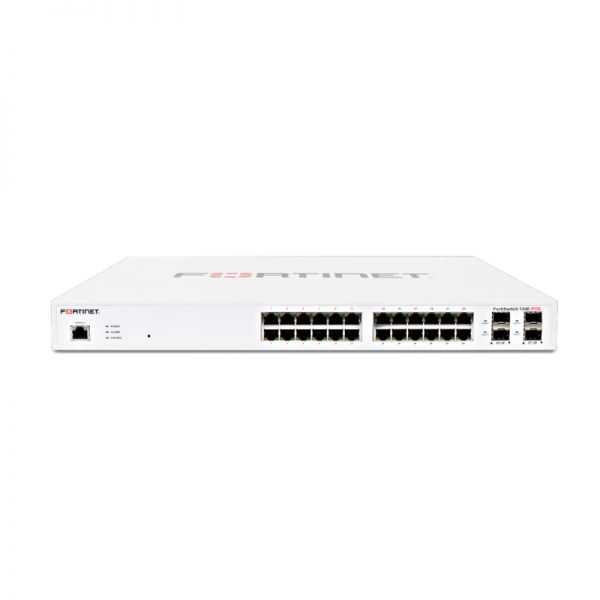 Fortinet FS-124E, L2 Switch – 24 x GE RJ45 ports, 4 x GE SFP slots, Fanless, FortiGate switch controller compatible.